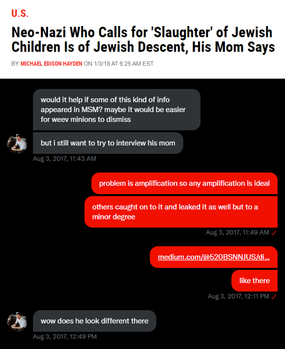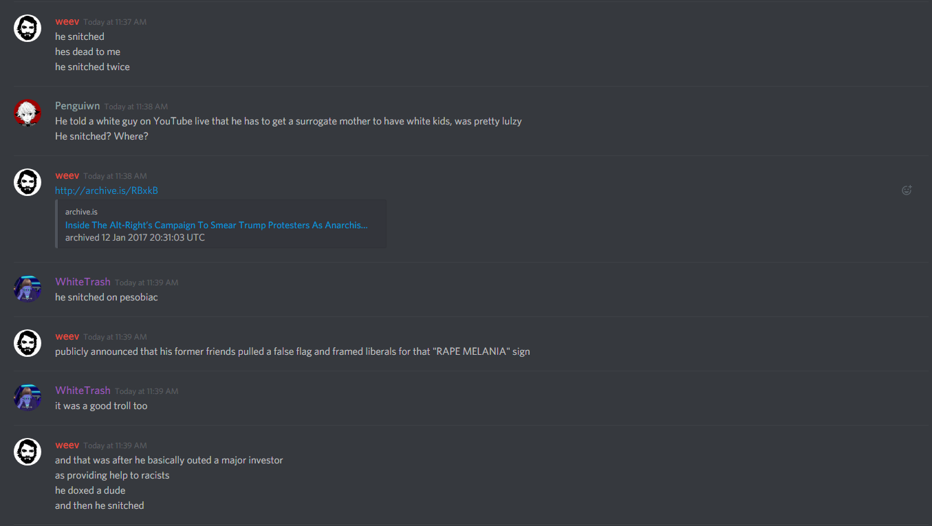 Andrew Anglin and Andrew “weev” Auernheimer were my primary targets back then, I undermined them in numerous ways including using tactics learned during the 2016 U.S. election period—and also skills acquired during my time monitoring conflict and war around the globe. Spreading disinformation, rumors, whisper campaigns and using genuine issues as wedges including “purity spiraling.” I was the apolitical “Super Nazi” and I actually tried to use authoritarianism to end Anglin and Auernheimer from inside of the “Alt-Right Gestapo.” I also cared about the people who had gotten involved in the movement, but many of my strategies were trying to do the right things the wrong ways, which I eventually had to confront.