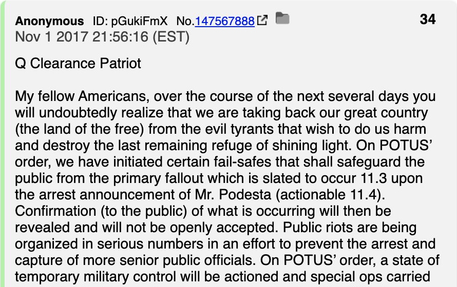Best I can gather, I likely caused QAnon, I remember the night in question (June 20th, 2017) Microchip talked to me about a specific thread I had dug up which had gotten shared into our server.