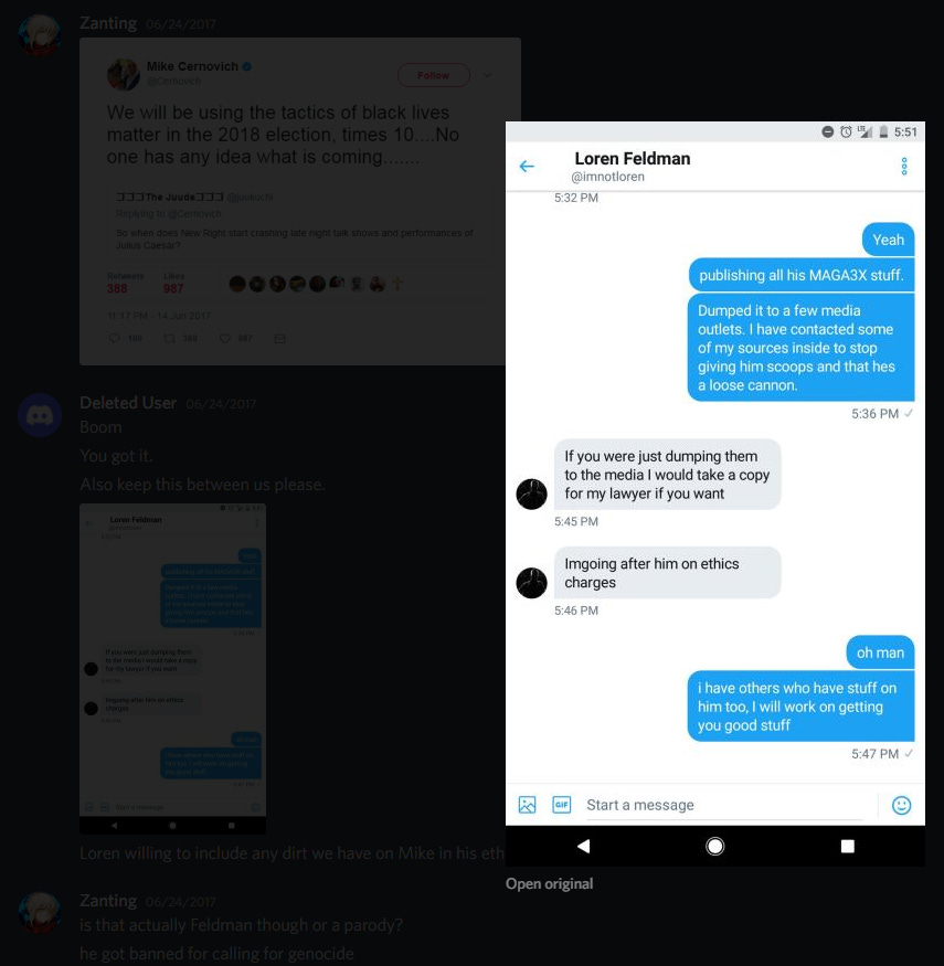 In the run-up to the publishing of the “planning documents,” Brower was in contact with videographer Loren Feldman, who was at the time suing Mike Cernovich.